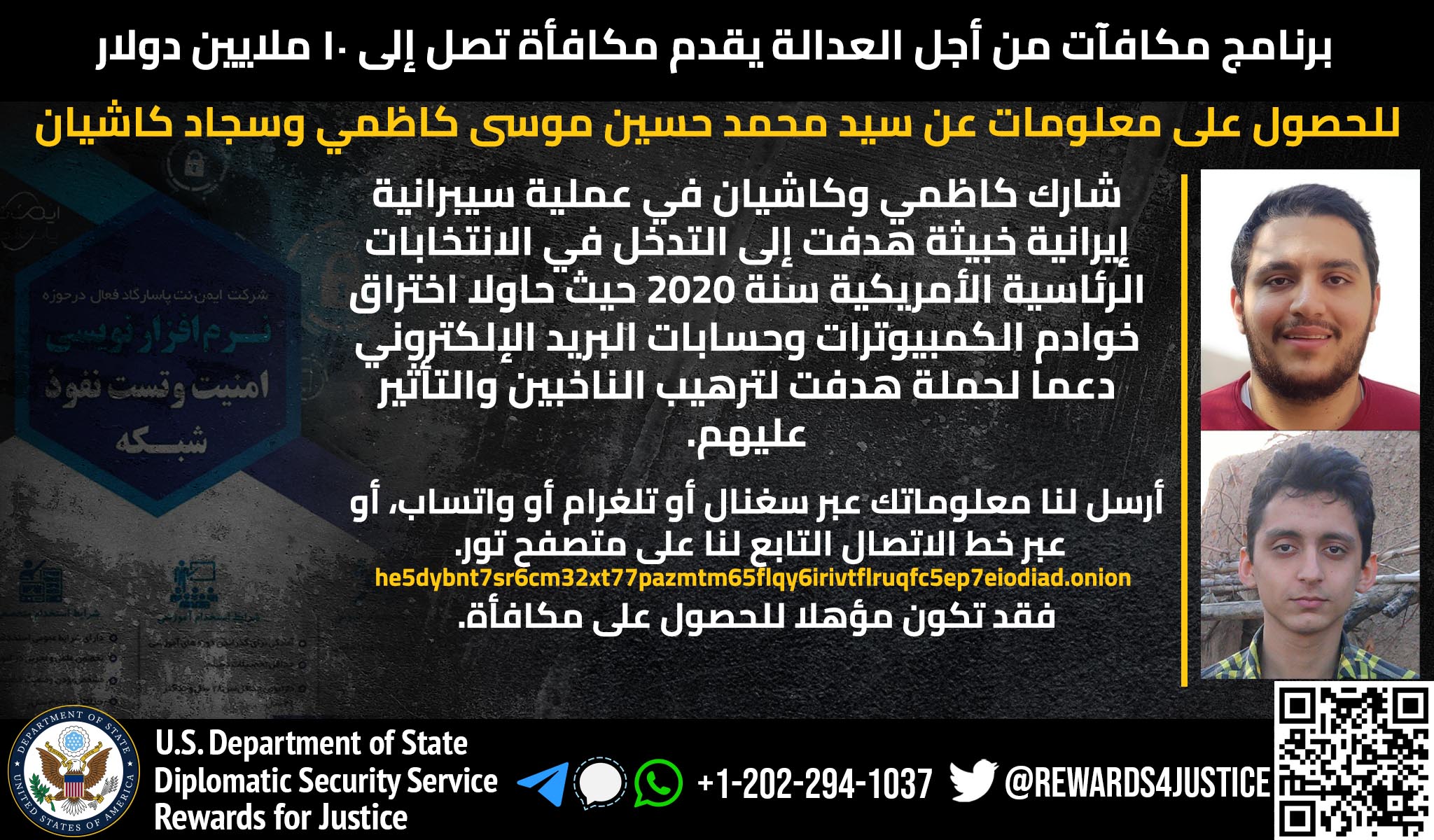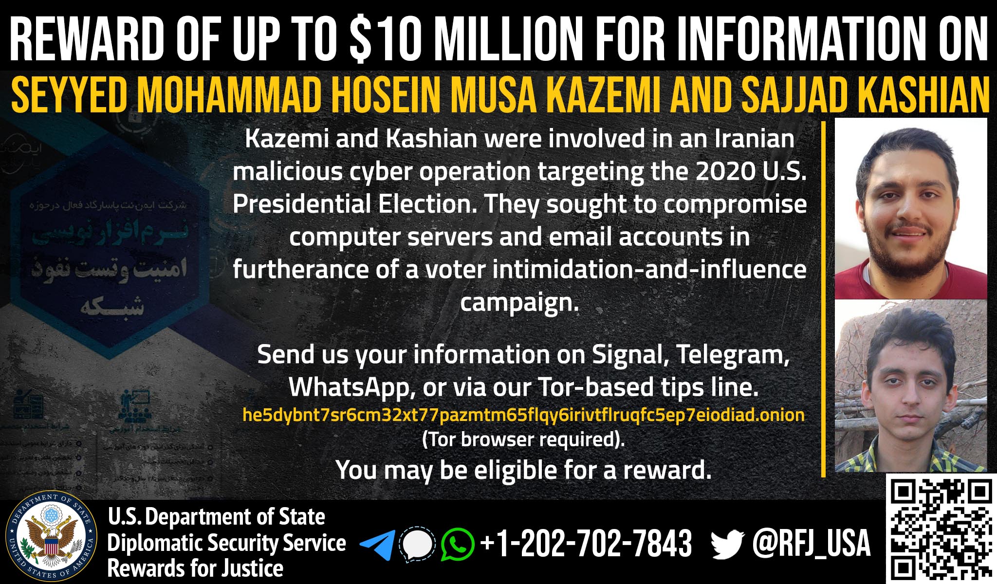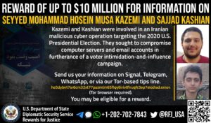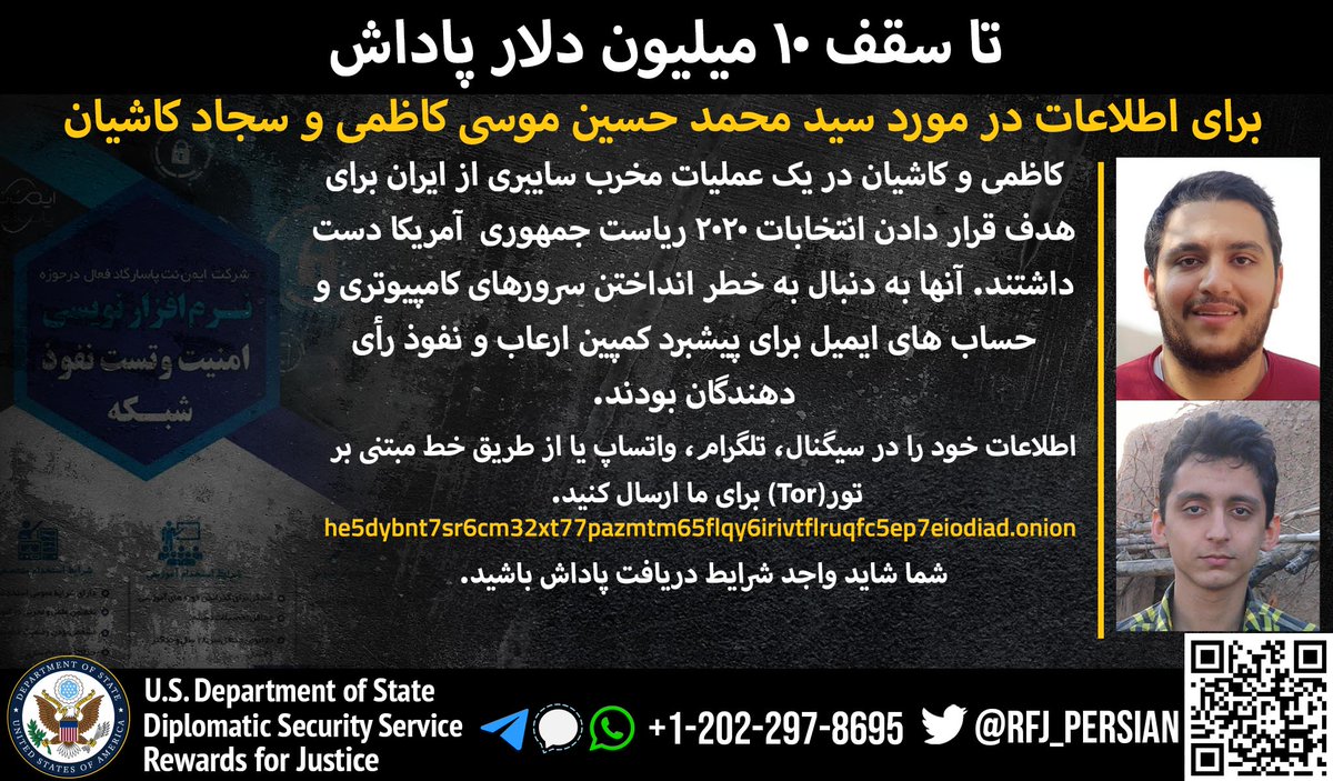 Anyone with information on Seyyed Mohammad Hosein Musa Kazemi’s malicious cyberactivity should contact Rewards for Justice via the Tor-based tips-reporting channel at: he5dybnt7sr6cm32xt77pazmtm65flqy6irivtflruqfc5ep7eiodiad.onion
