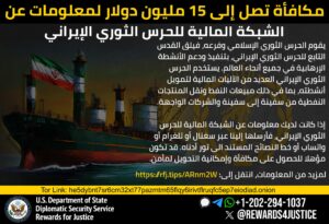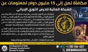 وەزارەتی دەرەوەی ئەمریکا خەڵات پێشکەش دەکات بۆ زانیاری لەسەر سەرچاوەکانی داهات بۆ IRGC، IRGC-QF و لقەکانی یان میکانیزمی سەرەکی ئاسانکاری دارایی، بۆ لەخۆگرتنی: