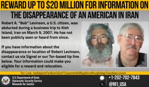 Rewards for Justice is offering a reward of up to $20 million for information leading to the location, recovery, and return of Robert A. “Bob” Levinson, as well as information leading to the identification, location, arrest, or conviction of any person responsible for his disappearance.