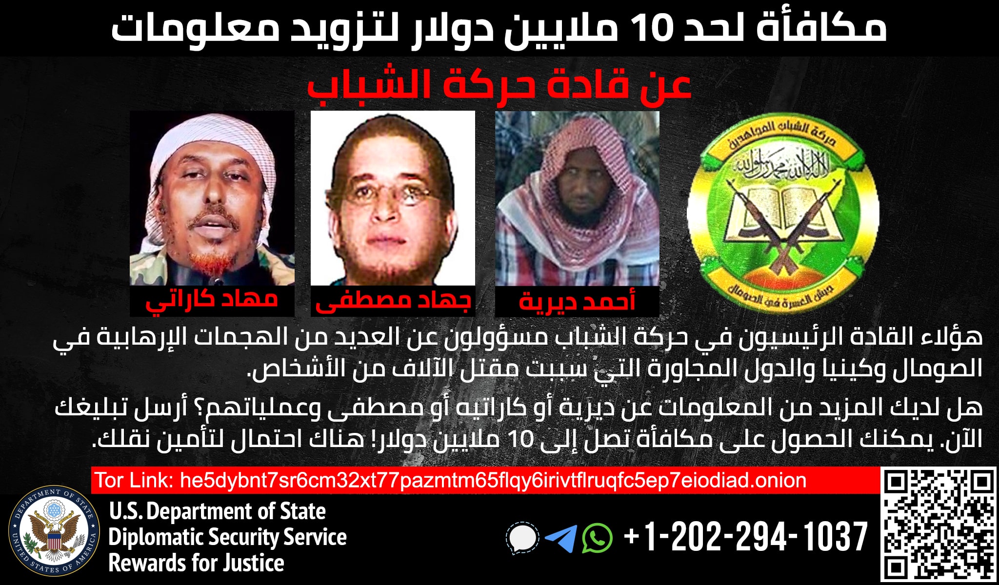Mostafa lived and graduated from college in San Diego, California, before moving to Somalia in 2005. It is believed he participated in attacks against Ethiopian forces before joining al-Shabaab in approximately 2008. With al-Shabaab, Mostafa has functioned in many critical capacities, including serving as a military instructor at the group’s training camps, leading foreign fighters, operating in the group’s media wing, acting as an intermediary between al-Shabaab and other terrorist organizations, and leading the group’s use of explosives in terrorist attacks. Mostafa is believed to continue to play a critical role in planning operations directed against the Somali government and internationally-supported African Union forces in Somalia and East Africa. As a result, Mostafa continues to pose a direct threat to U.S. forces, civilians, and interests.