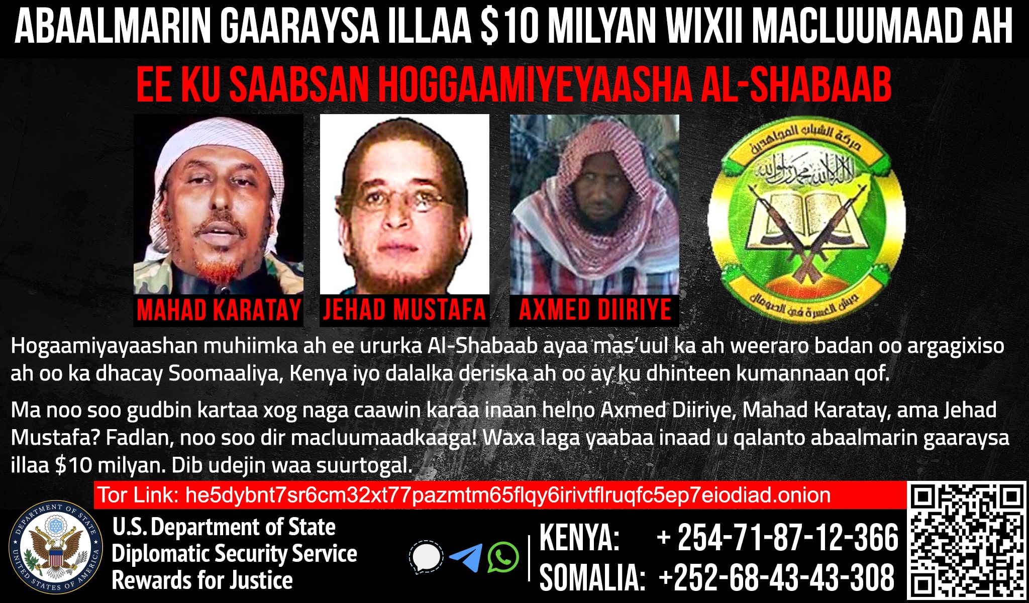 Rewards for Justice is offering a reward of up to $10 million for information on Jehad Serwan Mostafa, also known as Ahmed Gurey, Anwar al-Amriki, and Emir Anwa. Mostafa is a U.S. citizen and former resident of California, who has held leadership positions with al-Shabaab, a U.S.-designated Foreign Terrorist Organization. He is believed to be the highest-ranking U.S. citizen fighting overseas with a terrorist organization.